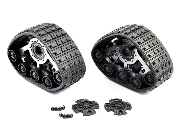 Designed to bolt directly onto the FTX Fury crawler, these units feature soft, plyable. block pattern rubber tracks that are 45mm wide and run with the help of a bearing supported centre drive cog and 10 black 20mm rollers. Moulded wheel caps screw to the side plates for a polished look.