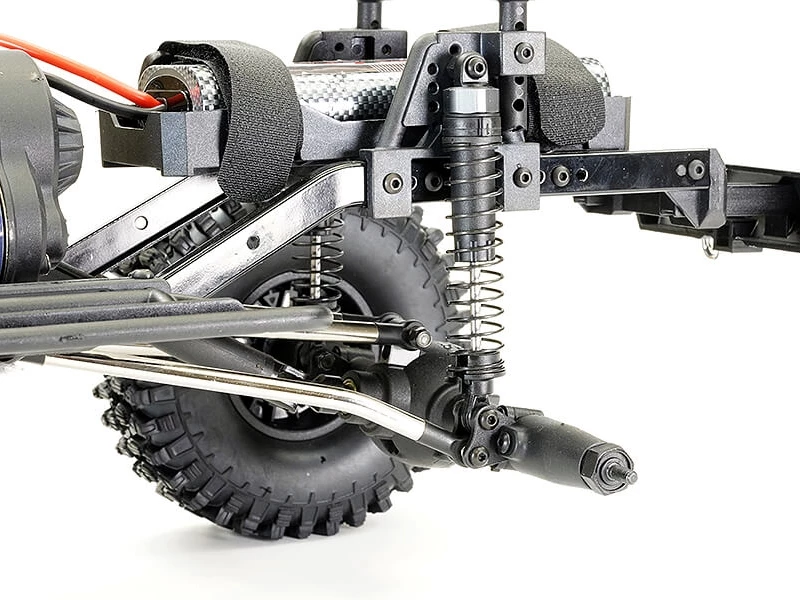 6mm steel links feature increased bend angle for better clearance over rocks and new aluminium axle link mounting point adds strength. Oil filled shock absorbers.