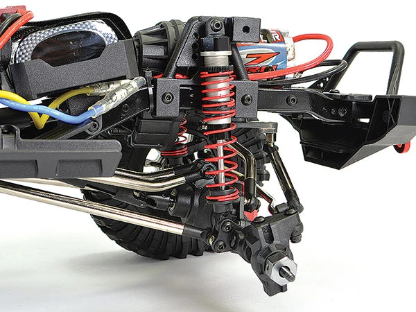 The drivetrain axles and transmission feature metal gears throughout, along with a slipper clutch to help protect things in the event of a jam. The optional aluminium threaded body shocks with dual springs come as standard for some extra fine tuning.